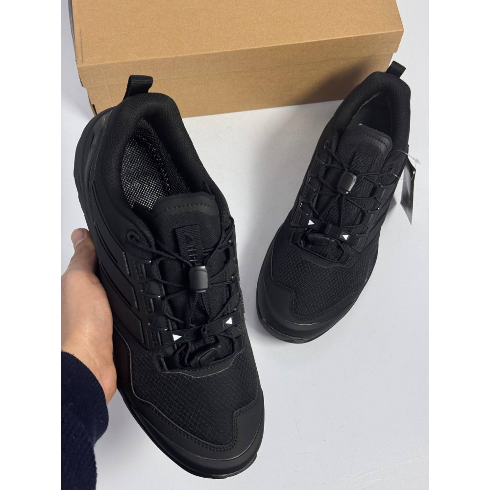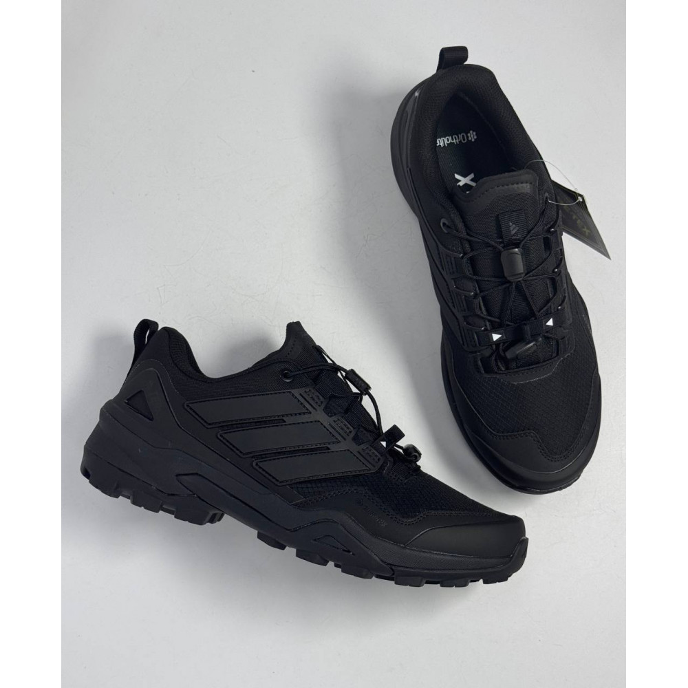 Непромокаемые кроссовки в глубоком черном цвете с утепленной конструкцией и мембраной Gore-Tex. Технологичная модель для зимнего треккинга и городских условий.
